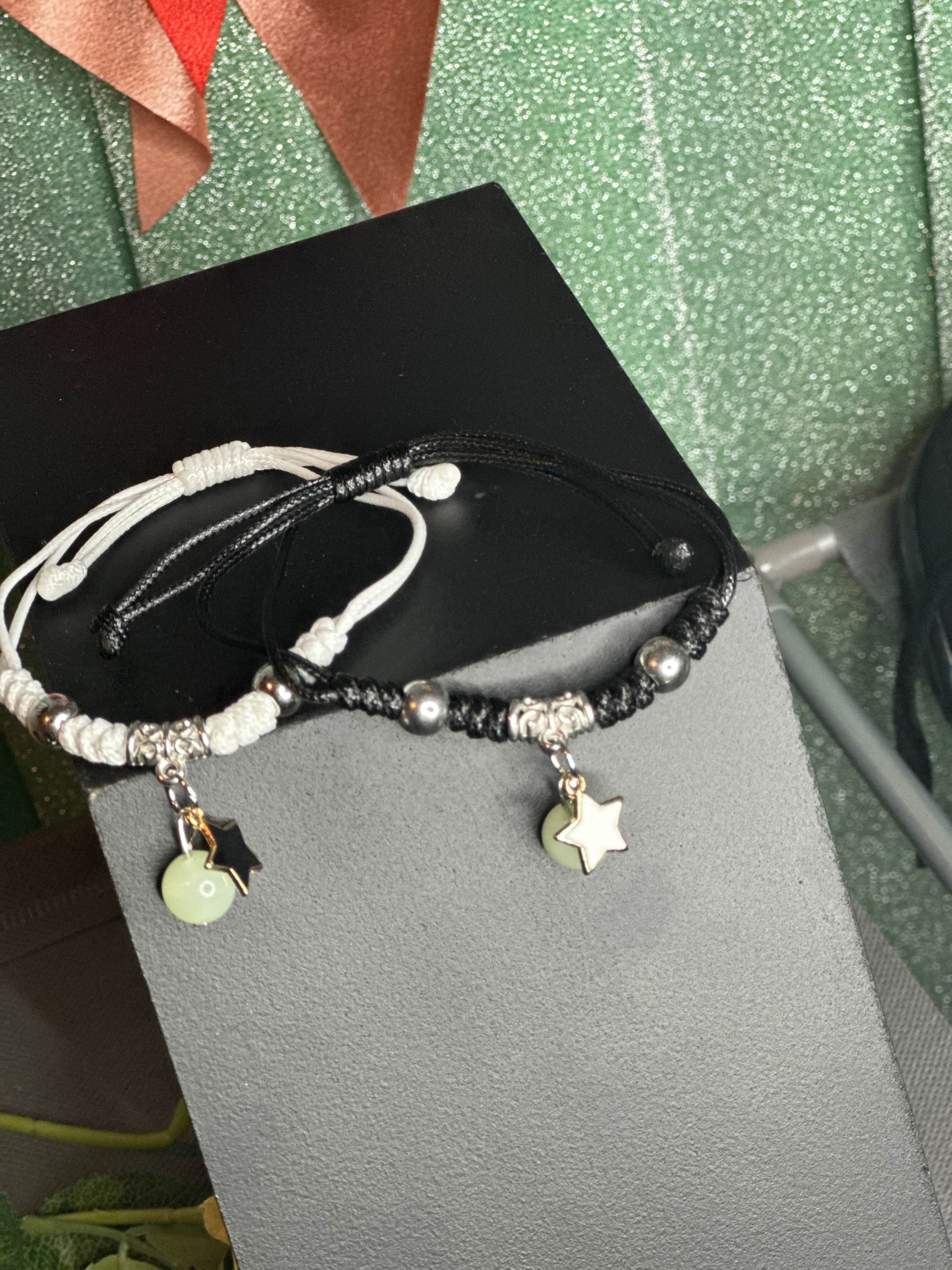 Designed for couples, friends, or anyone special, this bracelet features a luminous charm that shines softly in the dark, making it both stylish and meaningful.